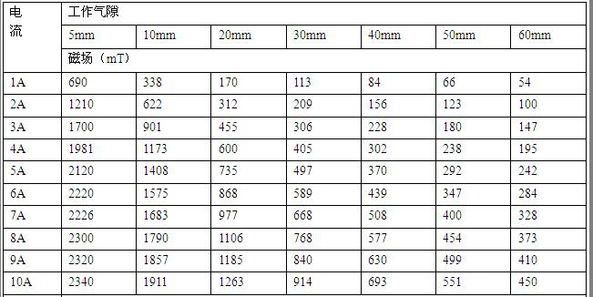 電磁鐵工作氣隙磁場是根據電磁感應原理,電流源對磁場線包供直流電流,并由導磁回路聚磁產生磁場,調節氣隙大小,改變極面直徑,調整工作電流均可改變工作氣隙磁場的大小強弱。