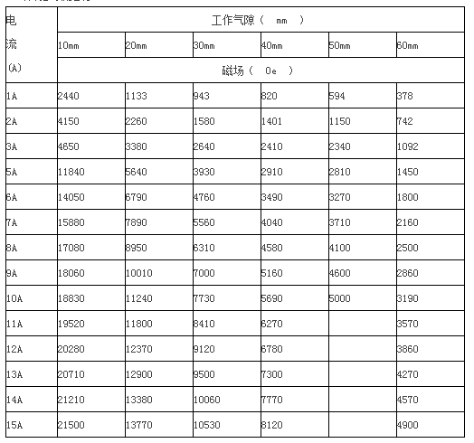 * 剩      磁:≤10mT, 工作氣隙10mm時