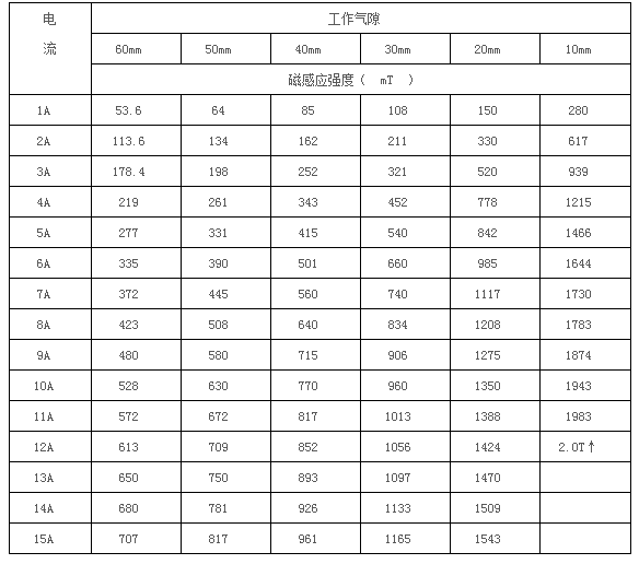 2.3、磁場強度:  H≥2T,工作氣隙10mm時