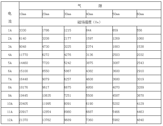 2.5、剩 磁:≤10mT 工作氣隙10mm時
