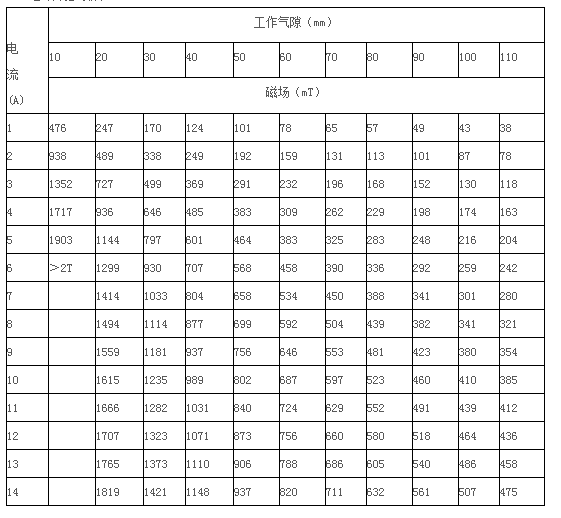 3.3 磁場強度:H≥0.4T,工作氣隙100mm時