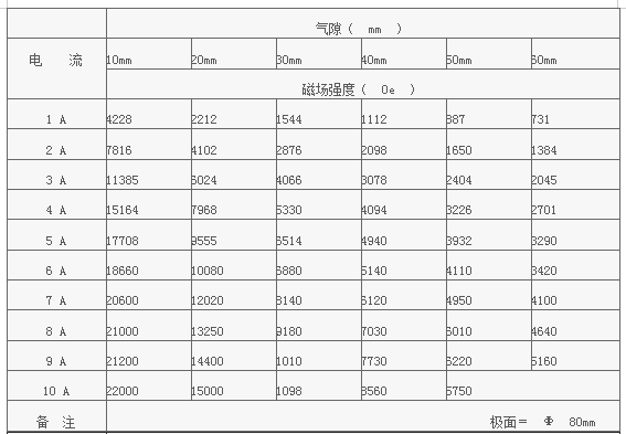 2.3、磁場強度: H≥0.6T,工作氣隙50mm時